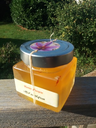 Ingrédients : Miel d'acacia "Miellerie de la Divette" et XX g de stigmates de Safran par kg de miel.